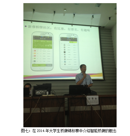 智能桥牌社区以一种社交化地、休闲娱乐的方式解决了桥牌学习难、找搭档难、组织比赛难的问题。智能桥牌社区是一个全新的工具,如何通过它来推动桥牌进校园的工作?我国首个智能桥牌社区新睿桥牌(www.xinruibridge.com)已经开发成功了。在长沙大学生桥牌锦标赛上,笔者介绍了智能桥牌和智能桥牌社区的概念,并演示了新睿桥牌社区,很多参赛队的领队老师表现出浓厚的兴趣。